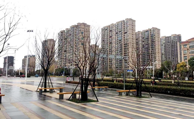 陽澄鄰里中心景觀工程主要包括北側(cè)主廣場石材鋪裝和四個(gè)苗木組團(tuán)共同構(gòu)成,其中綠化組團(tuán)由主廣場樹陣、西側(cè)生態(tài)停車場綠化帶、鄰里中心主入口區(qū)及南側(cè)卸貨區(qū)。苗木主要有櫸樹、烏桕、香樟、樸樹、柿樹等,整體觀感做到四季有賞、落葉常綠分明。