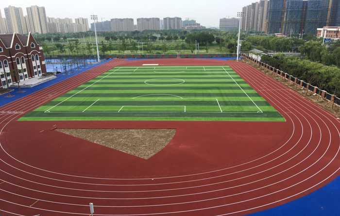 本次體育場地工程主要包括300米塑膠跑道、1個燈光足球場、3片籃球場和3片排球場。 2018年11月,塑膠跑道國家強制性標準《中小學(xué)合成材料面層運動場地》GB 36246-2018正式實施,本體育場地項目從前期的規(guī)劃設(shè)計,到制定參數(shù),到施工過程中的選材用料和現(xiàn)場施工工藝的把控,嚴格按新國標實施,同時在校方見證下按要求對固體顆粒、膠水、PU等材料現(xiàn)場取樣并送至上海專業(yè)檢測機構(gòu)進行復(fù)測,各項專業(yè)檢測報告均合格。在施工過程中狠抓質(zhì)量、盡職盡責(zé),確保環(huán)保、安全、精品,目前項目基本完工,取得了較好的觀感效果,同時也將為學(xué)校體育教學(xué)和體育活動提供了良好的場地條件。