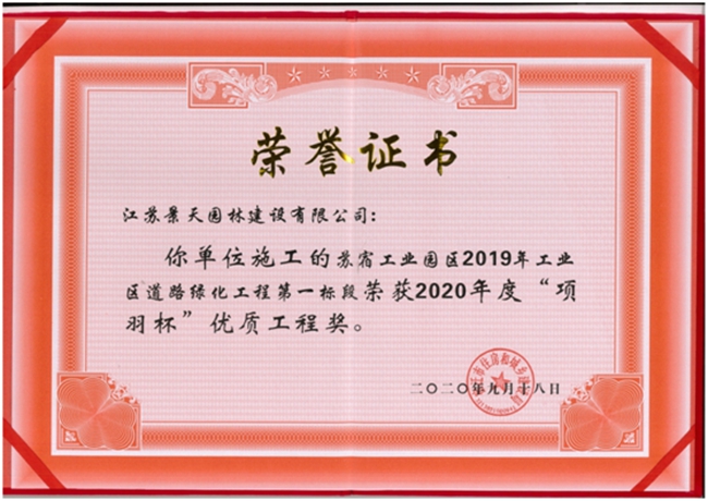 近日,由江蘇省蘇州宿遷工業(yè)園區(qū)開(kāi)發(fā)有限公司建設(shè)管理的蘇宿工業(yè)園區(qū)2019年工業(yè)區(qū)道路綠化工程第一標(biāo)段榮獲2020年度“項(xiàng)羽杯”優(yōu)質(zhì)工程獎(jiǎng)。