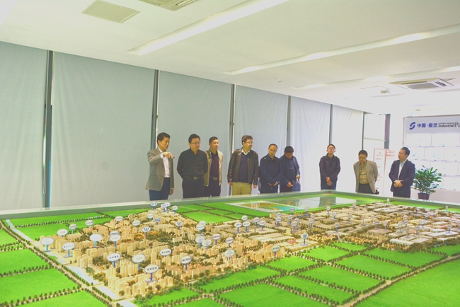 在園區(qū)管委會一樓規(guī)劃展廳,劉建華副總裁向楊民副總經(jīng)理一行詳細介紹了園區(qū)先進的規(guī)劃理念和未來發(fā)展藍圖。