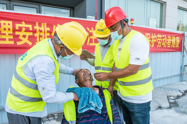 通過此次應(yīng)急演練,現(xiàn)場員工對高溫中暑的自救、互救方法有了更深的認(rèn)識,加強了現(xiàn)場作業(yè)人員應(yīng)對突發(fā)情況的反應(yīng)能力、提高了應(yīng)急救援技能,增強了戶外工人安全防范意識。借助此次應(yīng)急演練機會,結(jié)合高溫天氣以及實際情況,各項目部對防暑降溫所需物資進行了全面梳理,合理儲備藿香正氣水、人丹、5%碳酸氫鈉等應(yīng)急物資,為安全生產(chǎn)和工人的健康提供了有力保障。