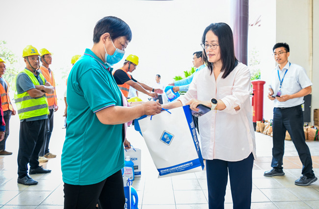 “大家在做好本職工作同時,注意保重身體,防暑措施一定要做到位,確保安全生產(chǎn)。”在明日鄰里中心慰問現(xiàn)場,李蘭霞與物業(yè)員工們親切交談,感謝他們?yōu)楣景l(fā)展和民生保障付出的辛勤努力,反復(fù)叮囑大家要提高夏日防暑意識,做好自我防護,確保以更好的狀態(tài)投入到工作中?,F(xiàn)場強調(diào)各部門要守牢安全底線,做好高溫時節(jié)各項工作,普及好防暑降溫和急救知識,確保廣大一線職工的安全。