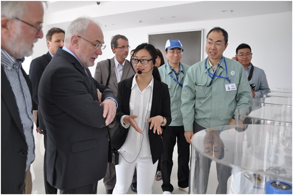 在尼吉康公司,南出智嗣董事長仔細(xì)為代表團(tuán)介紹了企業(yè)發(fā)展歷史、產(chǎn)品性能等情況,并饒有興趣地交流起各自的工作、生活。日語、德語、英語、中文夾雜在一起,加上雙方豐富的肢體語言,熱烈不已。南出董事長說,很享受在宿遷的工作、生活,每天在園區(qū)都可以品嘗到可口的日本料理,周末可以到市區(qū)品嘗星巴克,味道很不錯(cuò)。他還熱情邀請(qǐng)羅特先生一起品嘗。羅特對(duì)尼吉康公司的熱情接待表示感謝,他表示,此次園區(qū)之行雖然時(shí)間短暫,但給他留下了尤為深刻的印象,期望南出董事長等到德國做客。