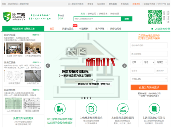比三家裝修網(wǎng)于2015年10月份落戶蘇宿電子商務(wù)產(chǎn)業(yè)園,該裝修網(wǎng)定位于“互聯(lián)網(wǎng)+”大眾創(chuàng)業(yè)平臺(tái),是一家扎根于三線城市,以“中介生意”模式幫助傳統(tǒng)的裝修行業(yè)的公司利用互聯(lián)網(wǎng)接到更多的訂單,幫助用戶找到合適的裝修公司。網(wǎng)站通過好品質(zhì)裝修,比設(shè)計(jì)方案、比施工質(zhì)量、比裝修價(jià)格,為用戶提供符合比三家裝修網(wǎng)標(biāo)準(zhǔn)的服務(wù)。