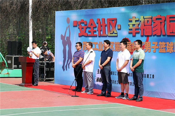 6月18日,“安全社區(qū)·幸福家園杯”園區(qū)第二屆社區(qū)男子籃球聯(lián)賽,在園區(qū)公舍籃球場精彩開幕,園區(qū)黨工委委員、管委會(huì)副主任戈亮出席開幕式。