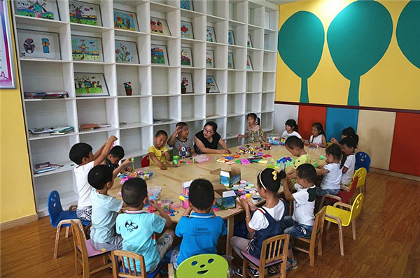 七月份和八月份的每個周六,是社區(qū)興趣班——手工秀上課的日子。每天下午三點(diǎn)鐘小朋友們手提多彩的太空泥,整整齊齊地坐好開始上課。學(xué)習(xí)中他們可都是一副極其認(rèn)真的樣子。