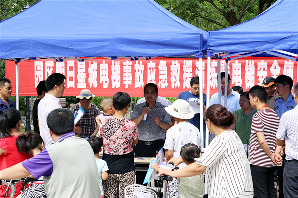8月6日上午,園區(qū)市場監(jiān)管局、社工委在明日星城小區(qū)組織電梯事故應(yīng)急救援演練暨電梯安全使用宣傳進社區(qū)活動。