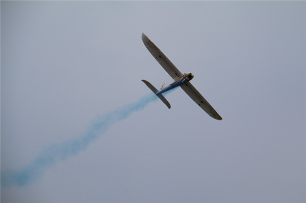 表演中,兩臺(tái)多軸飛機(jī)在場地作繞場及8字飛行,在飛行4分鐘后,隨著背景的高潮音樂響起,在空中打開了橫幅——“共創(chuàng)文明社區(qū),締造幸福家園?!彪S后,無論是機(jī)器人的介紹演示、固定翼無人機(jī)的拉煙表演還是直升機(jī)表演,又或是像真機(jī)空中格斗飛行,都讓同學(xué)們?cè)诨?dòng)和操作中充分感受到了科技的飛速發(fā)展,拓展了視野,更對(duì)航空模型制作產(chǎn)生了濃厚的興趣。